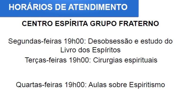 Pronto Socorro Espiritual: o Grupo Fraterno tem suas reuniões abertas ao público para assistência e orientação aos que procuram conforto.